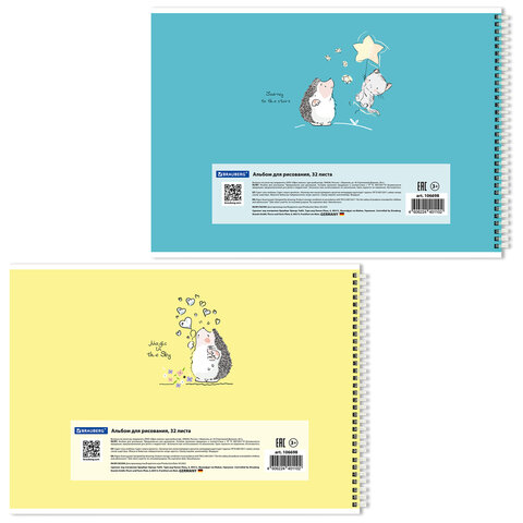 ----Альбом для рисования, А4 32 листов, гребень, обложка картон, BRAUBERG, 195х285 мм, "Ёжики" (2 вида), 106698