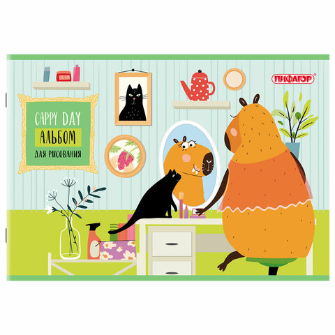 ----Альбом для рисования А4, 24 листа, скоба, обложка офсет, ПИФАГОР, 203х288 мм, "КАПИБАРА" (2 вида), 107104
