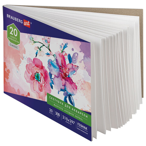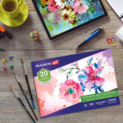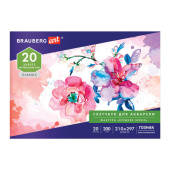 ----Альбом для акварели, бумага ГОЗНАК СПб 200 г/м2, 210x297 мм, 20 л., склейка, BRAUBERG ART, 106141