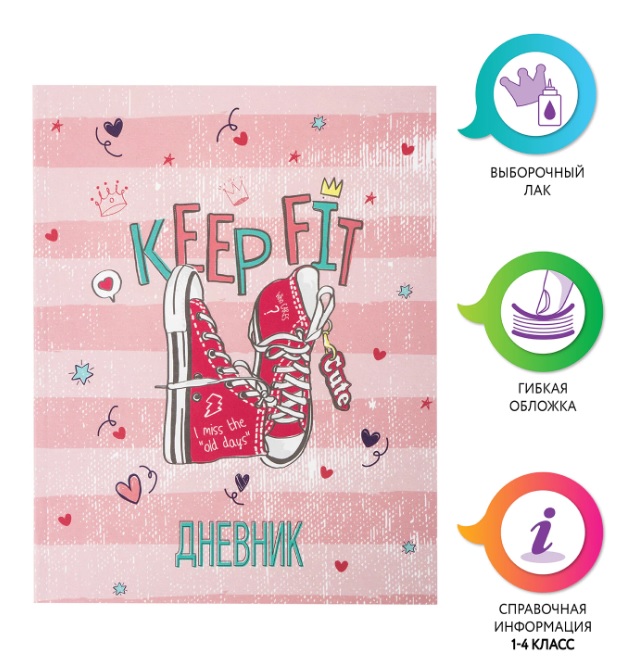 • картинка Дневник 1-4 класс 48л, гибкая обложка, ЮНЛАНДИЯ, выборочный лак, с подсказом, PINK SNEAKERS, 106005 от магазина МОЛТИ