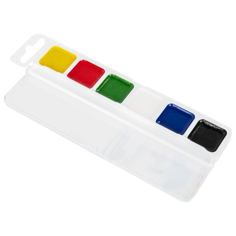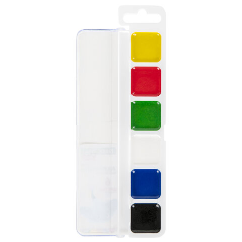 ----Краски акварельные BRAUBERG KIDS, медовые, 6 цветов, квадратные кюветы, пластиковый пенал, 192281