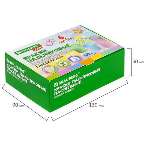 ----Краски пальчиковые пастельные для малышей от 1 года, 6 цветов по 40 мл, BRAUBERG KIDS, 192398