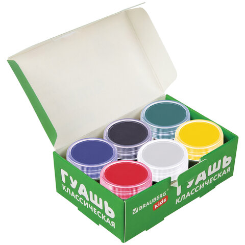 Гуашь BRAUBERG KIDS поможет юным художникам создать первые шедевры. Хорошо наносится на бумагу, картон, дерево, стекло, керамику.<br><br>В наборе 6 ярких и насыщенных цветов: белый, красный, черный, синий, желтый, зеленый.