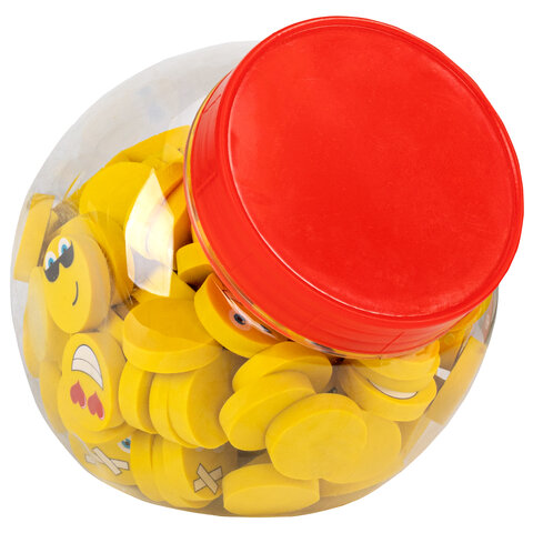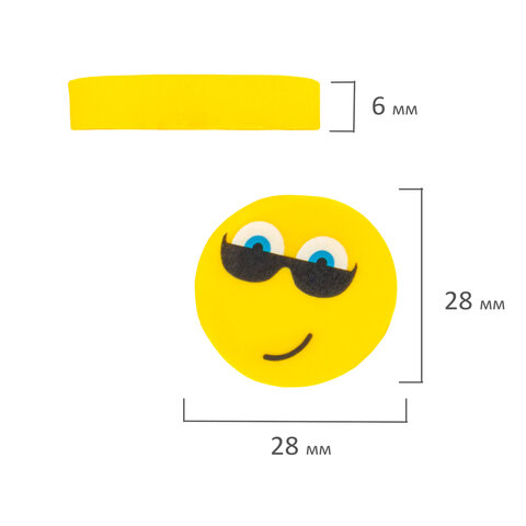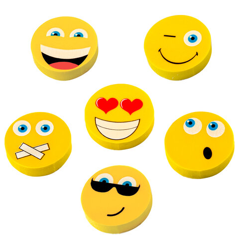 Ластик в форме смайлика в дизайне ассорти (без возможности выбора). Размер каждого ластика - 28х28х6 мм.