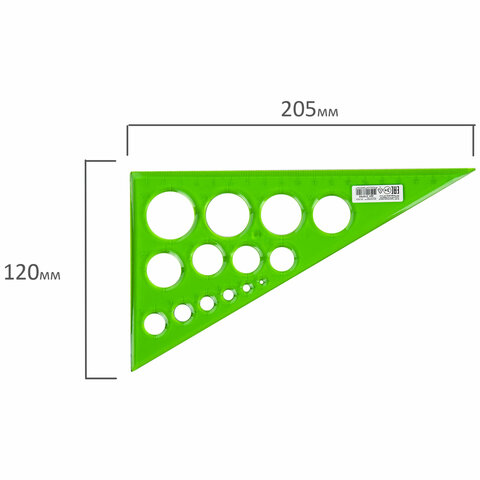 ----Треугольник пластиковый 30х19 см, ПИФАГОР, с окружностями, прозрачный, тонированный, 210793