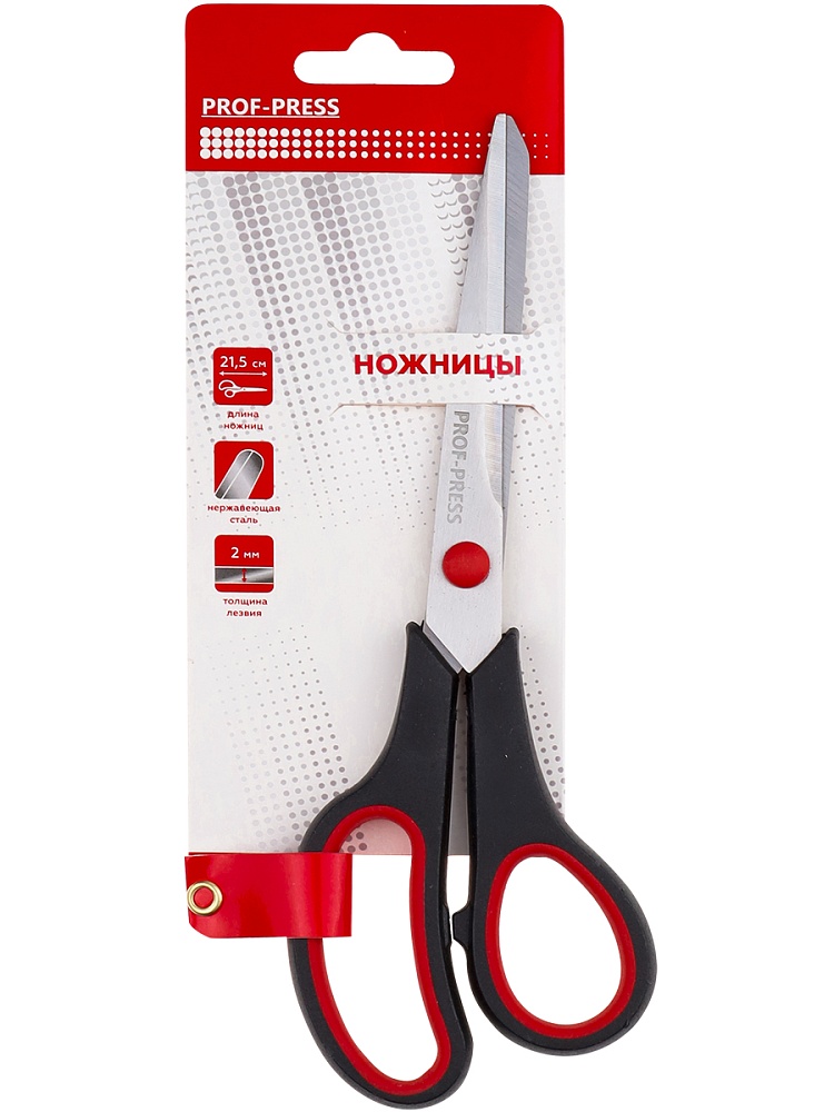 ----Ножницы канцелярские 21,5 см (НЖ-1091) двухцв. прорезин. кольца, в карт. блистере, кратн 12