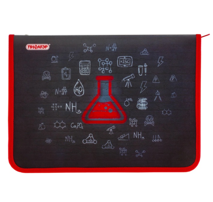 ----Папка для тетрадей ПИФАГОР, А4, 1 отделение, пластик, молния вокруг, "Химия", 228148