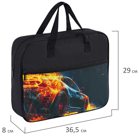 Упакована в плотный ПЭТ-пакет, который сохранит качество и товарный вид при хранении и транспортировке.<br><br>Тип товара: папка-сумка<br>Серия: DUPLE<br>Формат: А4<br>Пол ребенка: для мальчиков<br>Количество отделений: 1<br>Дизайн: Speed increase<br>Внешний карман: да<br>Застежка: молния<br>Ручки: тесьма<br>Цветная печать: да<br>Материал: полиэстер<br>Длина: 365 мм<br>Ширина: 290 мм<br>Глубина: 80 мм<br>Цвет: черный -