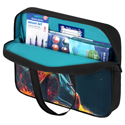 ----Папка на молнии с ручками BRAUBERG А4, 1 отделение, карман на молнии, 80 мм, "Speed increase", 273312