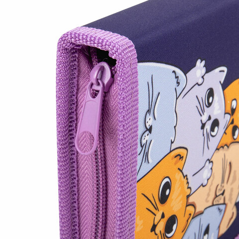 Каждый пенал упакован в ПЭТ-пакет с европодвесом, который сохранит качество и товарный вид при хранении и транспортировке.<br><br>Тип пенала: однокамерный<br>Назначение: для девочек<br>Серия: FLAP<br>Дизайн: Cats greetings<br>Застежка: молния<br>Количество отделений: 1<br>Материал: полиэстер<br>Основной цвет: сиреневый<br>Количество откидных планок: 1 шт.<br>Длина: 19 см<br>Ширина: 13 см<br>Упаковка: прозрачный пакет с европодвесом -