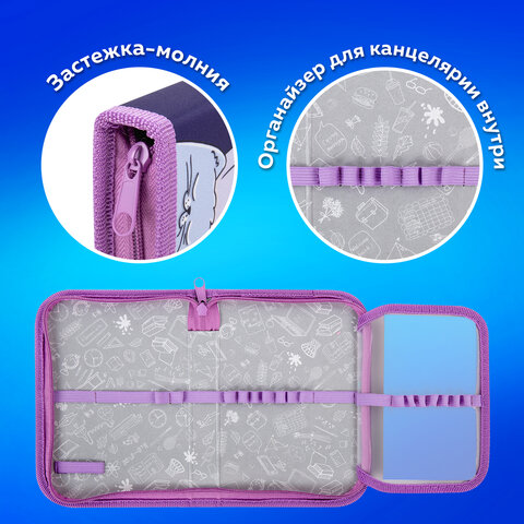 Пенал имеет стандартный размер 19х13 см, что позволяет легко размещать его в ранце или рюкзаке, сумке. Хорошая наполняемость пенала, до 23 предметов, дает возможность держать все необходимые для уроков канцтовары в порядке в одном месте.