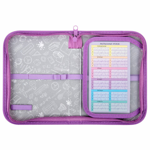 Пенал ПИФАГОР с 1 отделением, с 1 откидной планкой. Удобная молния с трех сторон с металлическим бегунком, прочные резинки для предметов. Вмещает до 23 предметов.<br><br>Материал пенала – полиэстер с цветной печатью и ярким дизайном. Основа пенала – плотный картон, обшитый тканью по краям. Такая конструкция отличается износостойкостью и прочностью, поможет защитить канцелярские принадлежности от повреждений. Внутри пенала на каждой створке прочные резинки для канцелярских принадлежностей, также пенал оснащен откидной планкой с органайзером и прозрачным кармашком для расписания уроков. Шаблон расписания уроков идет в подарок! Внутренняя часть выполнена из картона с глянцевой ламинацией.