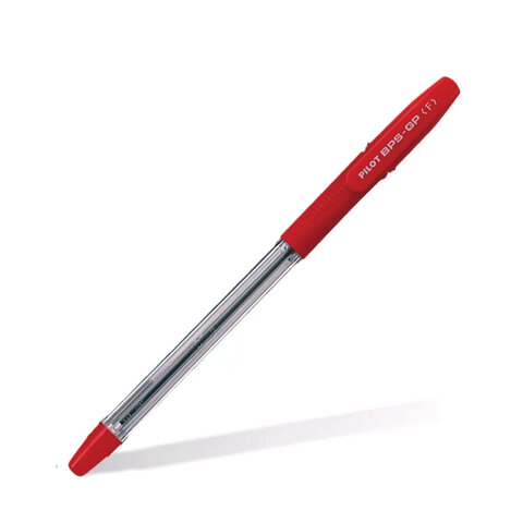 Ручка шариковая масляная с грипом PILOT BPS-GP, КРАСНАЯ, корпус прозр., 0,7мм, линия 0,32мм,BPS-GP-F