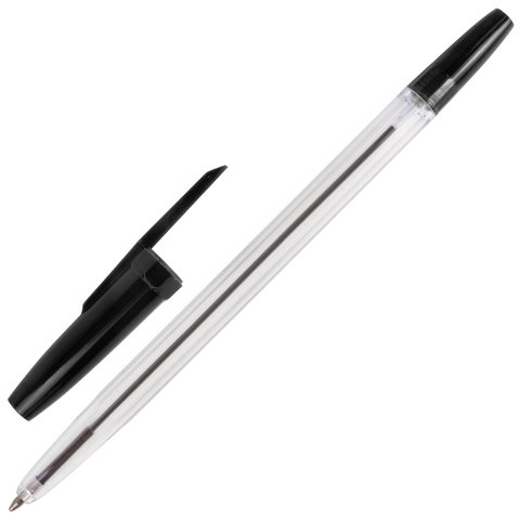 Ручка шариковая BRAUBERG "Line", ЧЕРНАЯ, корпус прозрачный, узел 1 мм, линия письма 0,5 мм, 141098