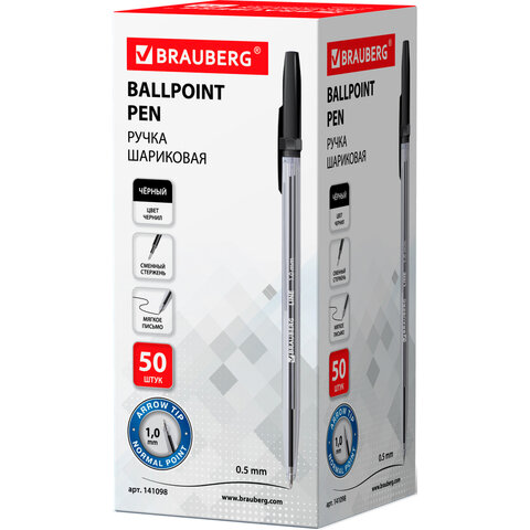 -Ручка шариковая BRAUBERG "Line", ЧЕРНАЯ, корпус прозрачный, узел 1 мм, линия письма 0,5 мм, 141098