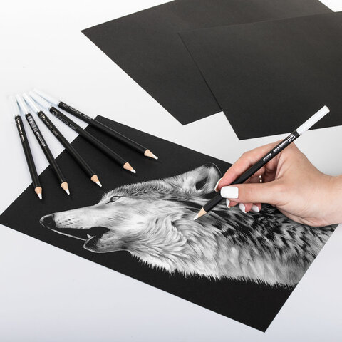 ----Карандаши художественные белые, НАБОР 12 шт. BRAUBERG ART CLASSIC, МЯГКИЙ грифель 3,3 мм, 181896